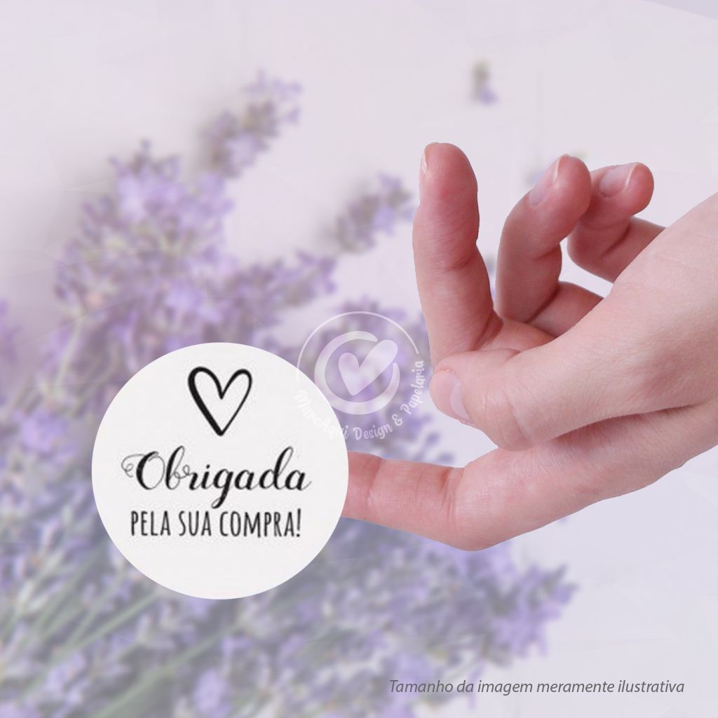 Adesivo Obrigada pela sua Compra 5,8x5,8cm - confeccionado em papel couchê 80g, é uma ótima opção para personalizar sua embalagem e se diferenciar nos detalhes.